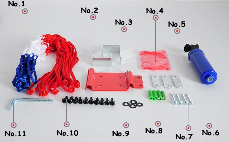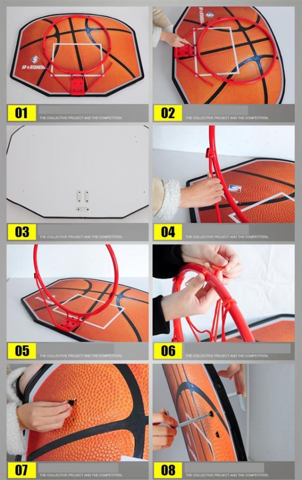 Баскетболно табло с кош за деца. За монтиране на стена, врата или друга стабилна повърхност /комплектът съдържа необходимите елементи за монтаж/. Комплектът включва мрежа и помпа. Игличката на помпата се намира във външния край на буталото. Размери на таблото - 80x61 см. Вътрешен диаметър на ринга - 41.5 см. Размери на опаковката - 81х63х6 см. Тегло за комплект - 5.2 кг. Материал - MDF, метал, пластмаса.