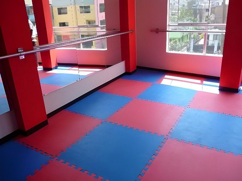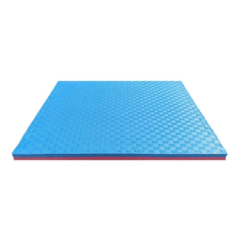 Настилка татами, двупластова, изработена от висококачествен материал EVA. Подходяща за спортни зали и за домашна употреба. Може да се използва и като подложка на фитнес уреди. Цветове - двуцветна (син и червен). Съединяване тип пъзел. Цената е за 1 брой. Размери - 100х100х4 см. Тегло за 1 брой - 3.9 кг.