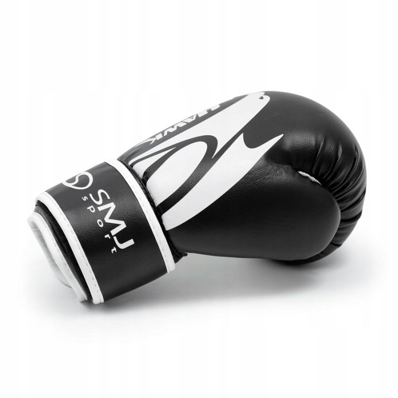 Боксови ръкавици SMJ SPORT Hawk, подходящи за начинаещи и напреднали. Изработени от висококачествена синтетична кожа с подсилена полиестерна подплата и пълнеж от пяна с висока плътност. Разполагат с колани с велкро лепенки на китките, което увеличава опората. Ергономично фиксираната част на палеца предпазва от нараняване. Издръжливи на опън найлонови конци. Отвори за проветряване при интензивна употреба. Комплектът съдържа чанта с мрежа за удобно съхранение и пренасяне на ръкавиците. Материал - висококачествена синтетична кожа. Размер - 10 OZ. Цвят - черен. Тегло за чифт - 650 г. Размери чанта - 36х16х14 см.