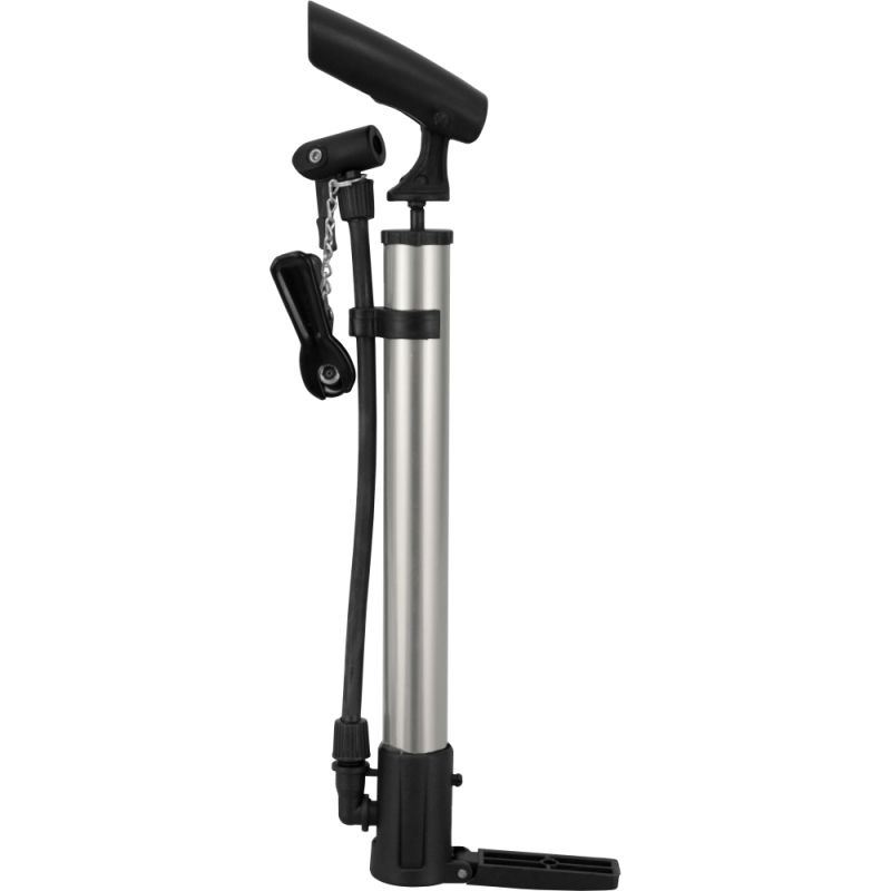 Ръчна, крачна помпа MAXIMA с маркуч, игличка и накрайник за гимнастически топки. Подходяща за помпане на гуми на различни видове велосипеди, топки, дюшеци. Разполага със степенка с опция за прибиране, когато не се използва. Комплектът включва стойка за велосипед и скоби за закрепянето и. Дължина - 31 см. Тегло за комплект - 230 г. Материал - PVC, алуминий.