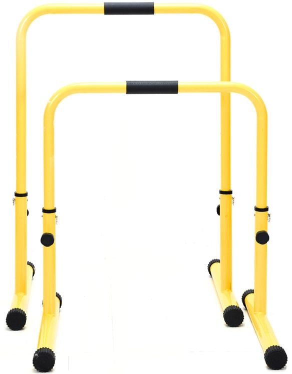 Стойка с успоредни лостове - мобилна успоредка с регулируема височина - 80 или 90 см. Практичен уред, подходящ за трениране на всички мускули на тялото чрез изпълнение на упражнения със собственото тегло. Мобилната успоредка е и универсален уред за Crossfit тренировки. Стабилна конструкция, която същевременно е и лесно преносима - може да тренирате навсякъде. При употреба на неравни повърхности, лостовете може да бъдат балансирани чрез завъртане на гумените капачки в основите им. Височина - 80 или 90 см. Диаметър тръби - 39, 42 и 50 мм. Дължина дръжка - 11 см. Заемана подова площ от всяка стойка - 62х38 см. Материал - метал. Максимално тегло на трениращия - 100 кг. Тегло на уреда - 8.5 кг. Тегло с опаковката - 9.5 кг. Размери кутия - 77х65х9 см.