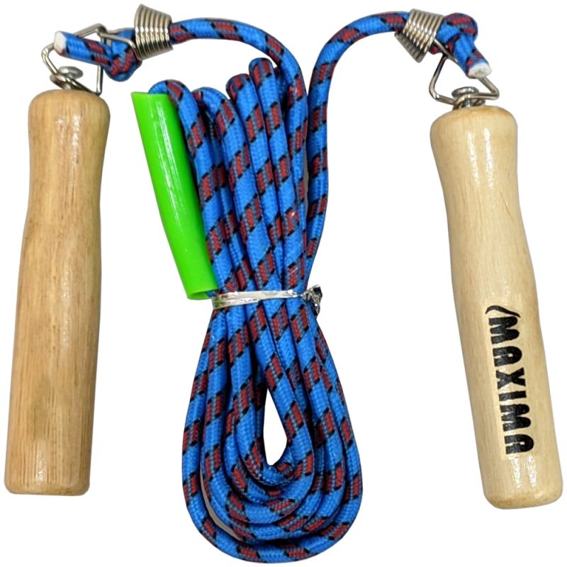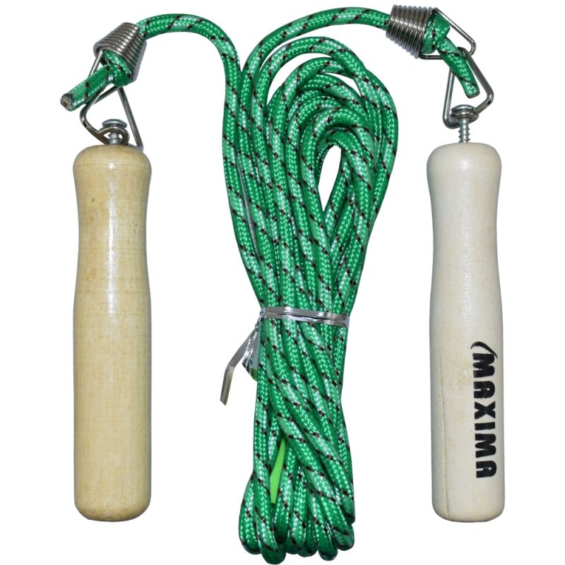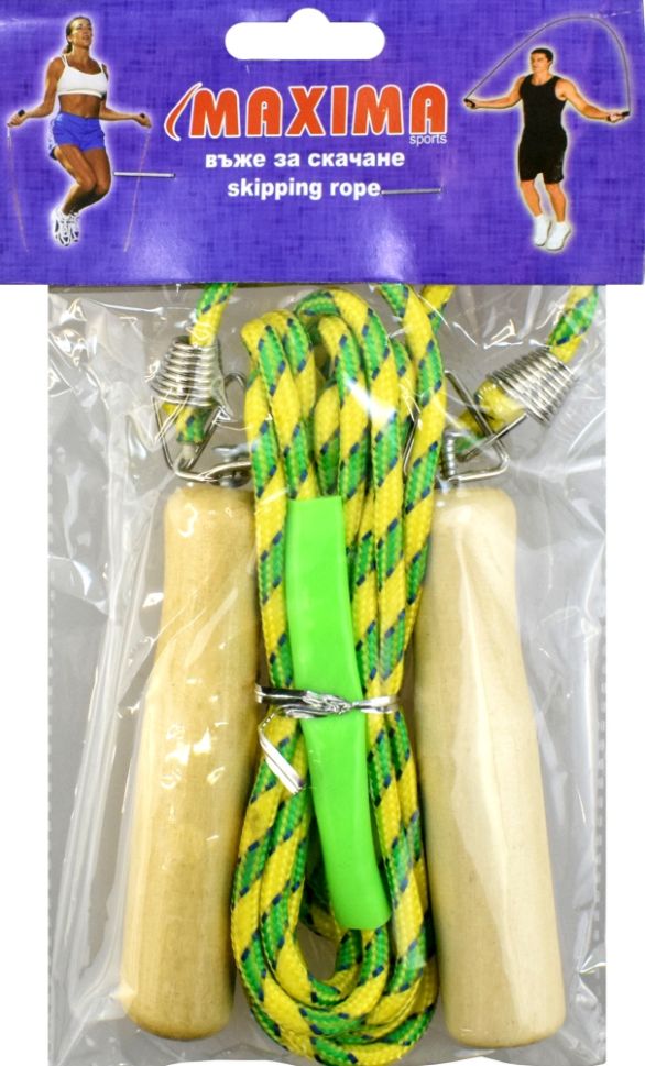 Въже за скачане MAXIMA с метални стави и дължина 3 метра. Дължината може да се променя лесно и бързо. Тренировките с въжето подобряват издръжливостта. Подходящо за деца и начинаещи. Материал дръжки - дървесина. Дължина дръжки - 11.5 см. Дължина на въжето - 3 м. Дължина с дръжките - 3.23 м. Тегло за 1 брой - 130 г. Цвят - различни цветове.