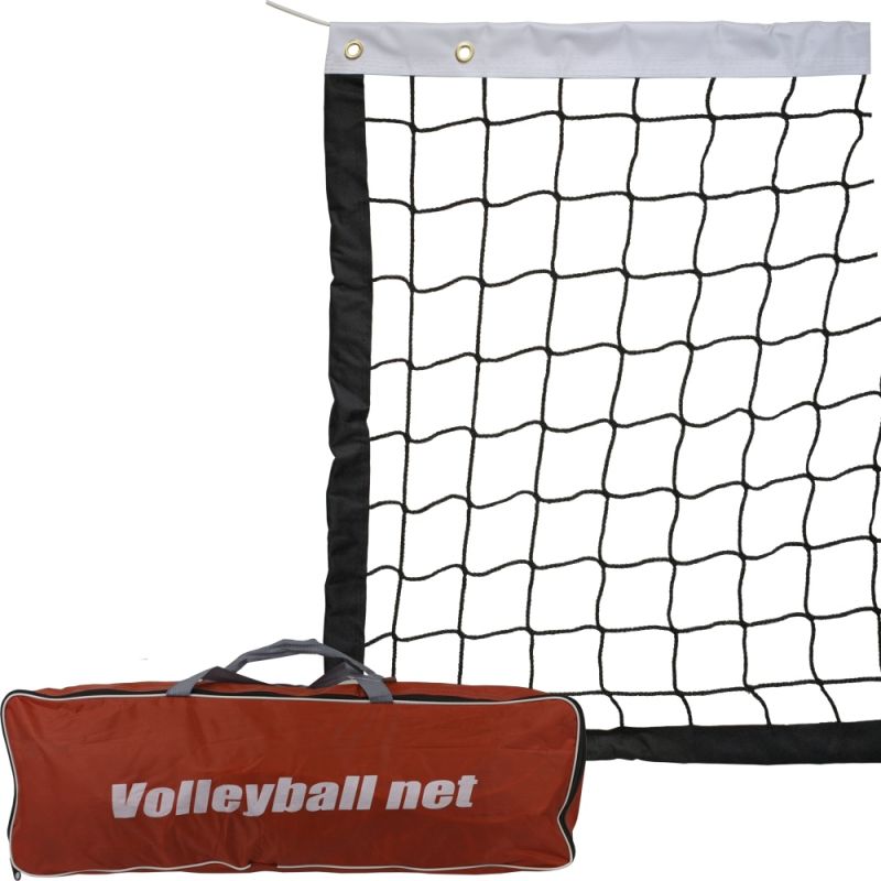 Мрежа за волейбол MAXIMA с размери 7.5х1 м и филе от четирите страни. Устойчива на външни атмосферни условия. Филе 6 см с четворен шев от горната страна и филе 5 см с двоен шев от останалите три страни. Материал мрежа - 5 мм въже от полиетилен с оплетка, безвъзлова. Размери на окото - 10х10 см. Обтегач - стоманено въже с PVC облицовка, дебелина 5 мм и дължина приблизително 10 метра. Подходяща за употреба на спортни площадки и училищни игрища. Мрежата се предлага в чанта от гумиран полиестер за удобство при пренасяне и съхранение. Размери сгъната в чанта - 61х18х12 см. Тегло - 2.5 кг.