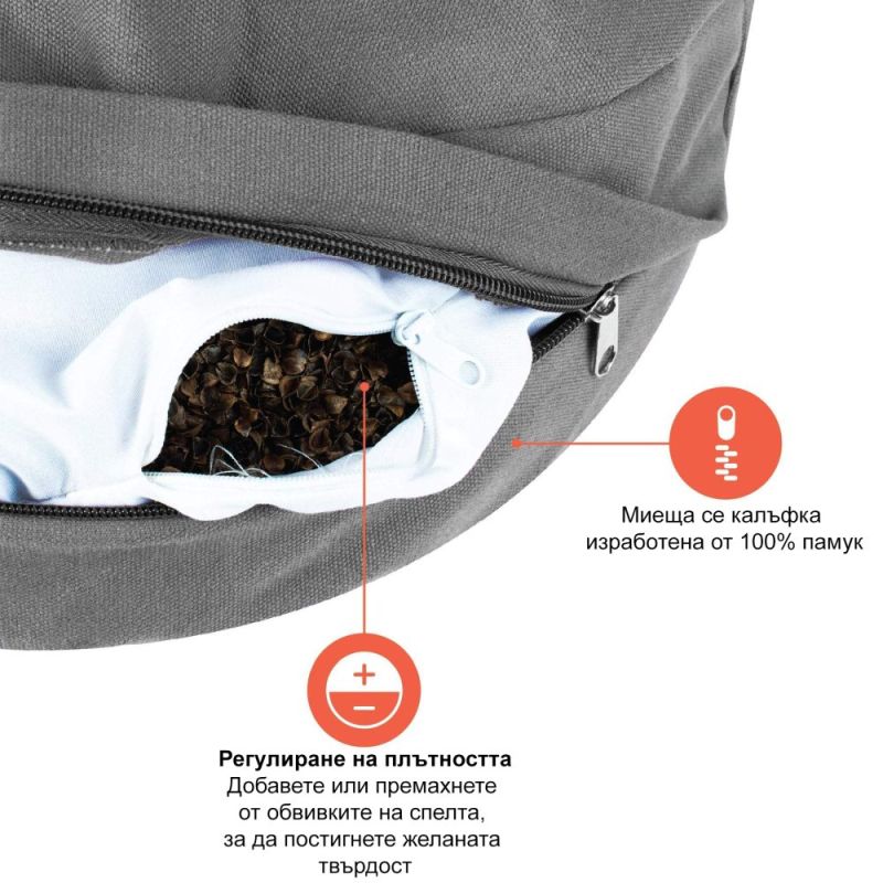 Възглавница за медитация полумесец (полузафу) MAXIMA, 40x26x15 см, Сив /30008201/