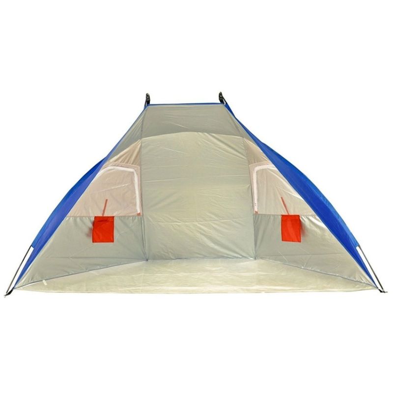 Плажна палатка (сенник) с дъно, основа трапец 270х120 см, височина 140см. Изработена от водоустойчив полиестер с 3000 мм воден стълб и UV защитен слой Rf +86. Подлепени шевове. Осигурява защита от слънце и вятър за трима възрастни или няколко деца. Подходяща за плаж, пикници сред природата или риболов. Екстри - вентлационни мрежести панели против насекоми, удобни джобове за съхранение на дребни вещи от вътрешната страна. Бързо и лесно сглобяване - обтегачите се закачат към покривалото с пластмасови скобички. Комплектът съдържа чанта за удобно съхранение и пренасяне на палатката. Тегло на палатката в чантата - 1500 г; Размери на чантата - 60хФ12см; Обтегачи от фибростъкло с диаметър 7.9мм.