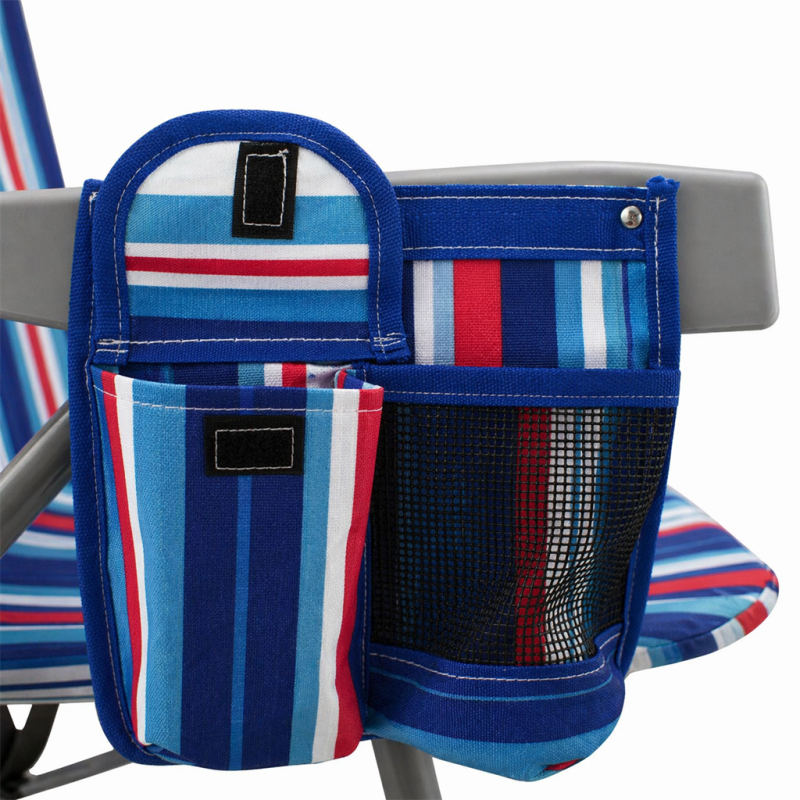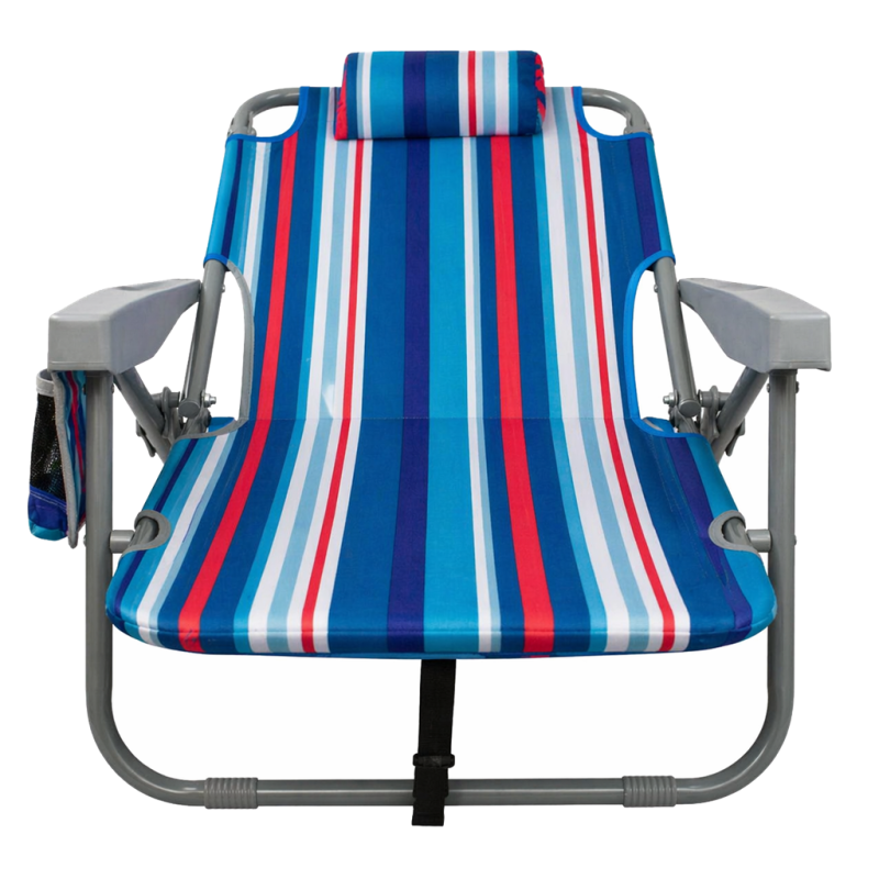 Наслади се на слънчевите дни с този удобен, лек и здрав сгъваем плажен стол, идеален за къмпинг, плаж, пикник или градина. Проектиран с мисъл за мобилност и комфорт, този стол комбинира модерен дизайн, качествени материали и ергономичност, които го правят незаменим аксесоар за всяко лятно приключение. Разполага с възглавница, поставка за чаша / бутилка, малък джоб с велкро лепенка, голям джоб с цип на гърба и хладилен джоб с цип отново на гърба. Възможност за промяна наклона на облегалката в 5 различни положения. Изработен от здрава стоманена рамка с диаметър 23 мм и издръжлив на различни атмосферни влияния полиестерен плат Oxford 600D, които предоставят стабилност и комфорт. Столът се сгъва и разгъва лесно и бързо. Разполага с дръжка и с презрамки, които дават възможност да бъде носен като раница. Максимална височина облегалка в положение стол – 77 см. Минимална височина облегалка в положение шезлонг – 27 см. Размери седалка – 46х50 см. Височина седалка – 24 см. Дължина подлакътник – 44 см. Ширина стол с подлакътниците – 59 см. Заемана подова площ – 57х54 см. Размери възглавница – 23х12х6 см. Тегло – 3.6 кг. Размери сгънат - 74х63х11 см. Материал – стомана, полиестерен плат Oxford 600D. Максимално натоварване - 110 кг.
