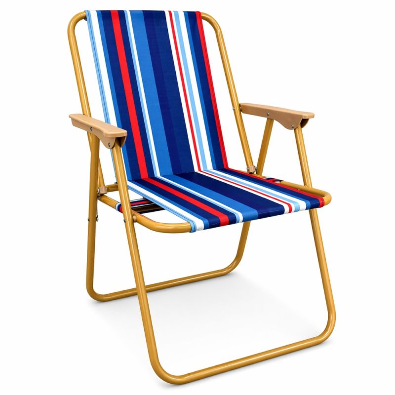Лек, компактен и удобен сгъваем стол за използване на открито. По-здрав и устойчив на различни атмосферни условия, поради факта, че е изработен от стомана и полиестер Oxford, което прави стола подходящ за градина, тераса, плаж, къмпинг. Височина облегалка - 76 см. Височина седалка - 36 см. Размери седалка - 43х38 см. Дължина подлакътник - 30 см. Ширина стол с подлакътниците - 52 см. Заемана подова площ - 48х45 см. Размери сгънат - 67х52х5 см. Тръбна стоманена рамка с диаметър - Ф18 мм. Тегло на стола - 1.9 кг. Максимално натоварване - 90 кг.