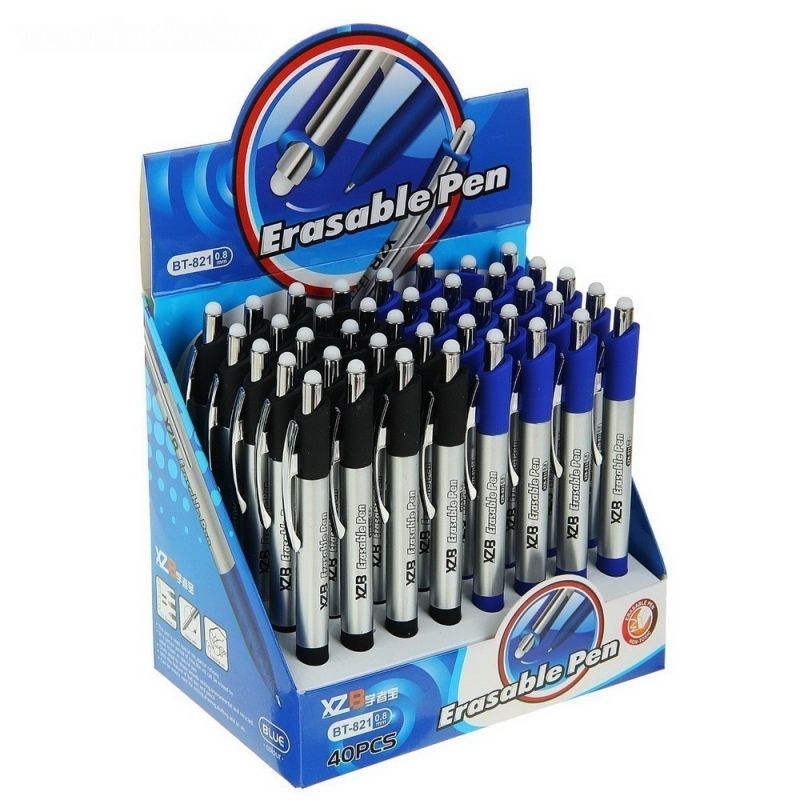 Химикалка с гума, изтриваем. Пълнител със специално мастило, което пише като химикалка, но се изтрива като молив. Дебелина на писеца - 0.8 мм. Дебелина на корпуса - 1.1 см. Дължина на корпуса - 14 см. Тегло за един брой - 11 г. Броя в кутия - 40. Тегло за кутия - 530 г. Размери кутия - 16х15х10 см.