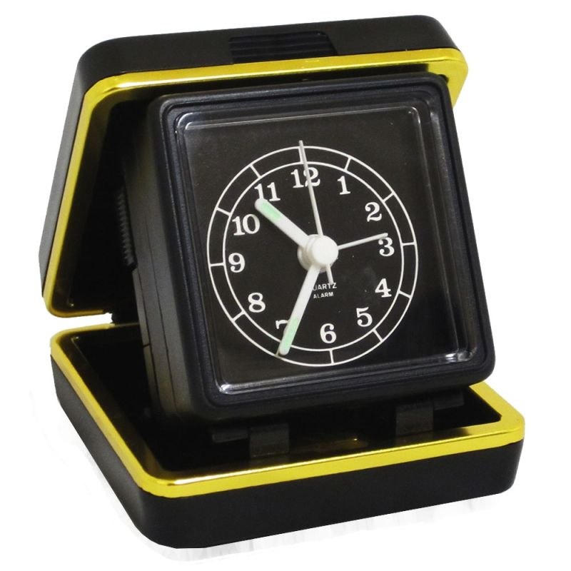 Будилник с кутия. Материал: PVC. Цвят: черен. Тегло: 90г. Р-ри разгънат: 7х7х8см. Р-ри сгънат: 7х7х3.5см.