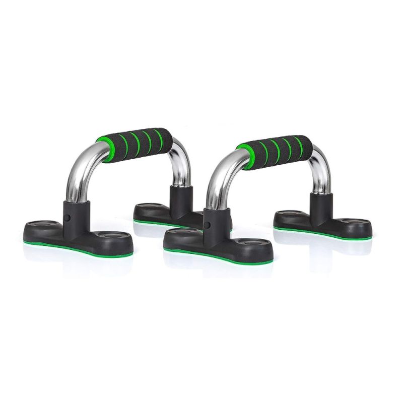 Поставки /ръкохватки/ за лицеви опори, чифт. Ергономичен дизайн, стабилни основи, меки дръжки. Използването на поставки при изпълнение на лицеви опори намалява напрежението в китките и увеличава обсега на движение. Съответно разтягането и натоварването на гръдните мускули е по-голямо и това повишава ефективността на лицевите опори. Размери - 23х15хH13 см. Диаметър на тръбата - 2.5 см. Тегло за комплект - 750 г. Материал - метал, PVC, EVA. Размери кутия - 22х15х9 см.