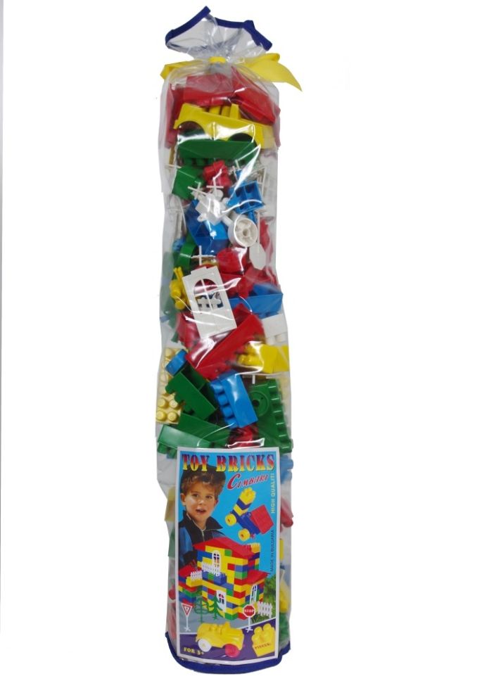 Конструктор - строител, състоящ се от 200 пластмасови части, събрани в здрава и удобна за прибиране чанта. Частите са с разнообразни форми: блокчета, покривчета, прозорци, гуми, дървета. С елементите може да се сглобят къщичка, количка, влакче или други фигури. Елементите се сглобяват лесно и без усилие. Игрите за „строене” стимулират въображението, пространственото мислене и концентрацията на детето. Частите са в различни цветове, което помага на децата играейки да научат цветовете. Конструкторът е с тегло 1,200 кг и размери на опаковката 13х13х67 см. Предназначен е за деца над 3 години.