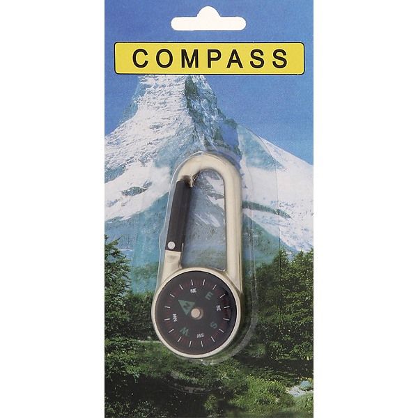 Карабинер с компас на блистер. Тегло: 40г. Р-ри: 6.5х3х0.8см. Лек, удобен, практичен. Цвят: сив.