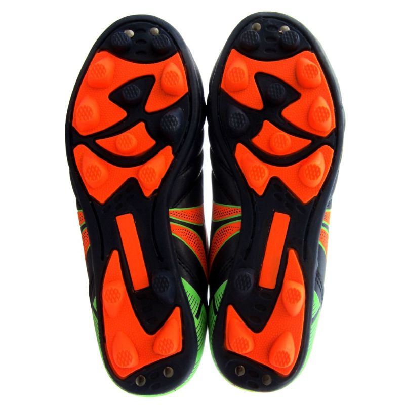 Детски футболни обувки, бутонки от мека синтетична полиуретанова кожа , които прилягат удобно по крака. Гумена подметка с фиксирани бутони за добро сцепление с терена. Шита и лепена подметка за повече здравина. Обувките са олекотени, за да не натоварват и изморяват допълнително детското краче. Предназначени са за игра върху всякаква естествена тревна настилка. Материал: горна част - изкуствена кожа PU, подметка - гума с фиксирани шипове. Размери: 24-34, налични 32, 33, 34; 32 номер - дължина на стелката 20.5см; 33 номер - дължина на стелката 21см; 34 номер - дължина на стелката 21.5см.