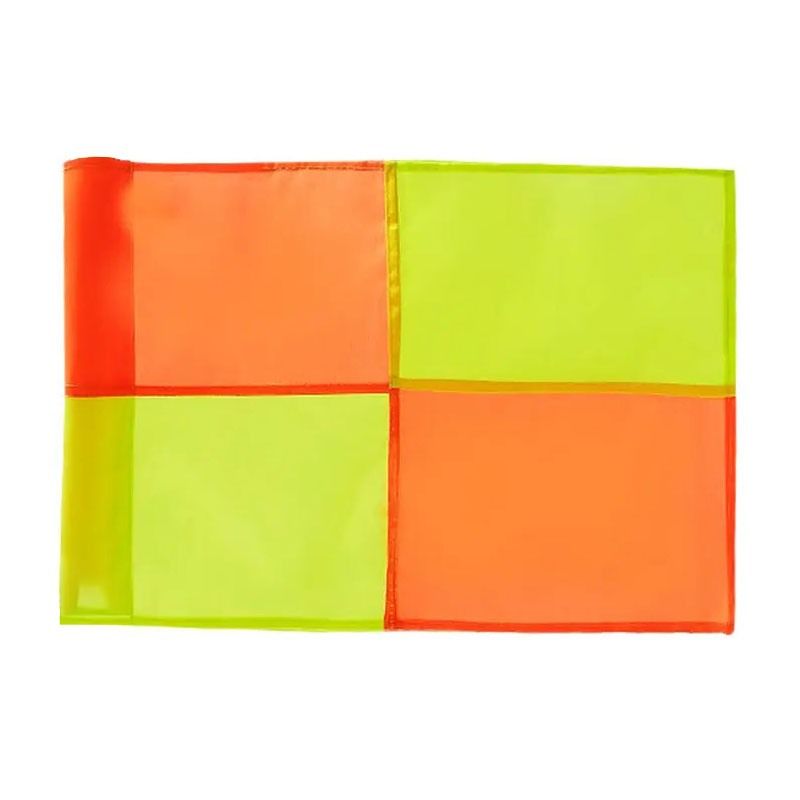 Флаг за корнер MAXIMA, 39х31 см. Подходящ за нанизване на колчета с диаметър до 3 см. Двуцветен – в жълт и оранжев цвят. Материал – полиестер. Тегло – 10 г. Подходящ за употреба с шип за колче 300678 и тояжка 200898 (като комбинация се получава комплект от шип, колче и флаг за корнер). Цената е за един флаг.